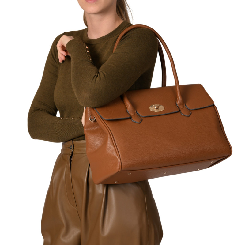 Carlton porte le look du sac à main mais se positionne comme un sac porté à l'épaule. Confectionné dans une superbe imitation de cuir grainé, matière innovante de la nouvelle collection Montana, ce sac fera vite sa place dans votre garde-robe. Carlton est habillé d'un fermoir rotatif, doré tel un bijou. À l'intérieur, il est doté d'un grand compartiment accueillant deux poches - une poche plate multifonctions et une poche zippée - et d'une poche plate contre ce compartiment sous le rabat également. Sa bandoulière ajustable permet de le porter à l'épaule ou en travers, s'adaptant à vos préférences. Enfin, ses finitions métalliques dorées et la doublure intérieure monogrammée en polyester complètent le look bohème du sac.
